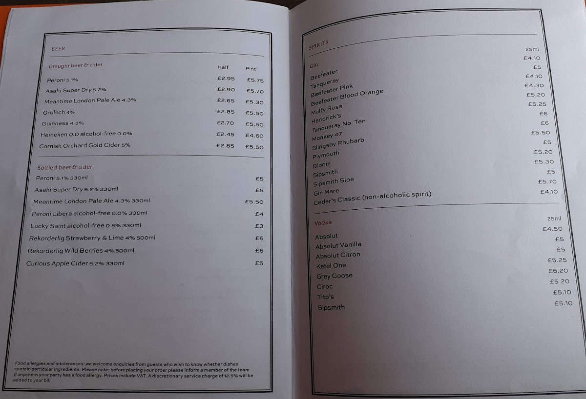 Don't forget to treat yourself to a refreshing beverage from their diverse beer selection, including quenching options like Peroni and Asahi Super Dry. If you're more of a cider person, you can enjoy a crisp Cornish Orchard Gold Cider or the fruity Rekorderlig Strawberry & Lime. There's also an excellent variety of alcohol-free drinks for those who prefer to stay sober but still want to enjoy the café's ambiance.